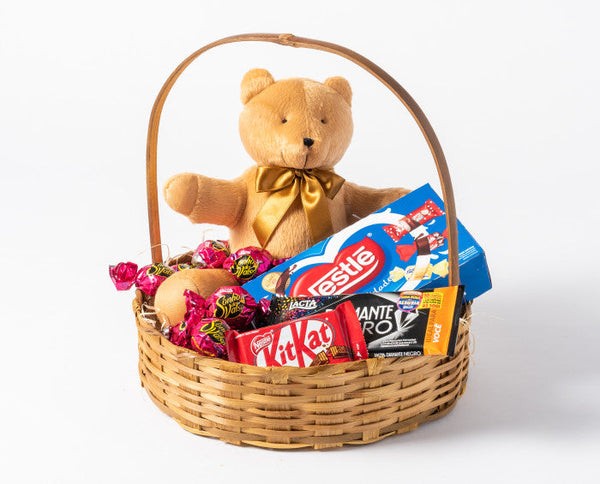Cesta de Chocolate e Pelúcia